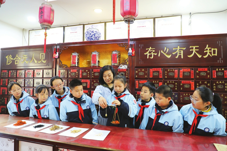 12月7日,陽(yáng)泉市城區(qū)小陽(yáng)泉北社區(qū)黨委聯(lián)合陽(yáng)泉市實(shí)驗(yàn)小學(xué),開(kāi)展了“學(xué)習(xí)草藥知識(shí)、感受中醫(yī)魅力”課外實(shí)踐活動(dòng)。孩子們來(lái)到藥店,通過(guò)識(shí)別中草藥、稱量、加工中草藥材等具體活動(dòng),近距離體驗(yàn)中醫(yī)藥傳統(tǒng)文化特色,感受中醫(yī)藥魅力。圖為孩子們?cè)谒巹煹闹笇?dǎo)下稱量中草藥。(張春林?jǐn)z)