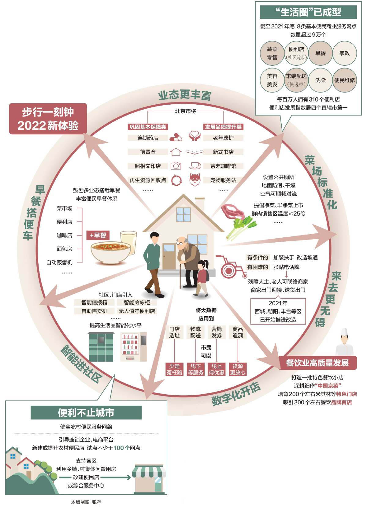 走出家門(mén)15分鐘內(nèi),有熱氣騰騰的早餐、新鮮上架的蔬果,修車(chē)、理發(fā)、取快遞一趟全部辦妥。截至2021年底,全市蔬菜零售、便利店(社區(qū)超市)、早餐、家政等8類(lèi)基本便民商業(yè)網(wǎng)點(diǎn)超過(guò)9萬(wàn)個(gè),“一刻鐘便民生活圈”歷經(jīng)十余年建設(shè)輪廓已現(xiàn)。市商務(wù)局2022年將加快打造“一刻鐘便民生活圈”,優(yōu)化資金支持方向,優(yōu)先支持在便民設(shè)施不足區(qū)域新建亟須業(yè)態(tài)網(wǎng)點(diǎn),從豐富業(yè)態(tài)、加快智能化數(shù)字化、餐飲業(yè)高質(zhì)量發(fā)展等方面入手提升“生活圈”體驗(yàn)。 本報(bào)記者 馬婧 白歌