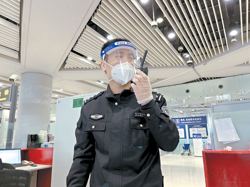張浩在首都國際機(jī)場邊檢出境現(xiàn)場執(zhí)勤。