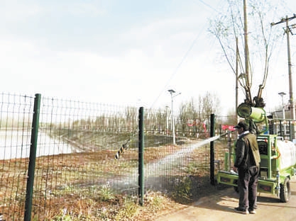 為免施工揚(yáng)塵,灑水車(chē)隨時(shí)跟進(jìn)灑水。