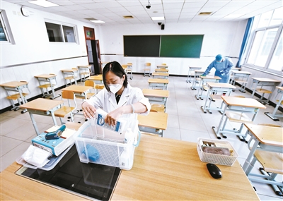 今年高考期間,作為常規(guī)考點之一的東直門中學考點將設(shè)置13個常規(guī)考場、3個備用考場。熊勁介紹,當遇到發(fā)熱考生時,考點考務(wù)人員會立即將發(fā)熱考生通過專門進口帶進考點內(nèi)的隔離室,進行健康觀察。為了防止交叉,考點為發(fā)熱考生設(shè)置專門進入考點的通道。