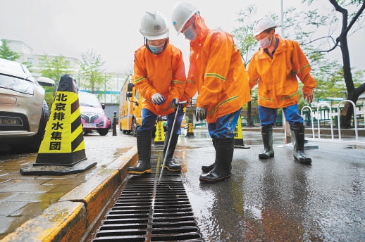 昨天9時(shí)許,在朝陽區(qū)管莊路上的一處排水口旁,兩名北京排水集團(tuán)的防汛人員先用錐桶做好警戒防護(hù),接著用鉤子鉤起雨水箅子,加速排水。在朝陽區(qū)金泰橋下凹橋區(qū),北京排水集團(tuán)壩河流域分公司的工作人員早六時(shí)就到達(dá)現(xiàn)場進(jìn)行值守。“這個(gè)點(diǎn)位地勢較低,短時(shí)雨量大的情況下容易造成積水,為避免影響交通,我們提前做好了準(zhǔn)備?!爆F(xiàn)場一位工作人員說。