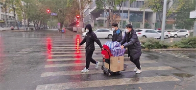 學(xué)校進(jìn)入臨時(shí)管控狀態(tài),但很多學(xué)生人在住宿區(qū)、學(xué)習(xí)物品在北校園的學(xué)習(xí)區(qū),怎么辦?該校通過(guò)接訴即辦平臺(tái)收到學(xué)生的反映后,立即作出決策,成立物品傳遞轉(zhuǎn)運(yùn)隊(duì)伍,幫助學(xué)生解決人與學(xué)習(xí)物品分離的問(wèn)題,學(xué)院書(shū)記、院長(zhǎng)和師生志愿者立即行動(dòng)起來(lái)組建搬運(yùn)隊(duì)伍,有的在校內(nèi)幫忙打包學(xué)生物資,有的在校外接應(yīng)、及時(shí)將學(xué)生所需物資送到學(xué)生手里。