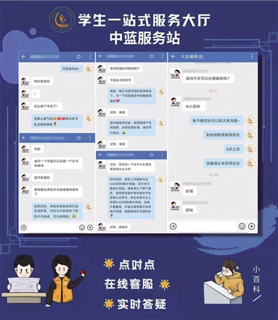 北京工業(yè)大學(xué)中藍(lán)校區(qū),線上實(shí)時(shí)問(wèn)答平臺(tái),第一時(shí)間給予學(xué)生回應(yīng)。學(xué)校供圖