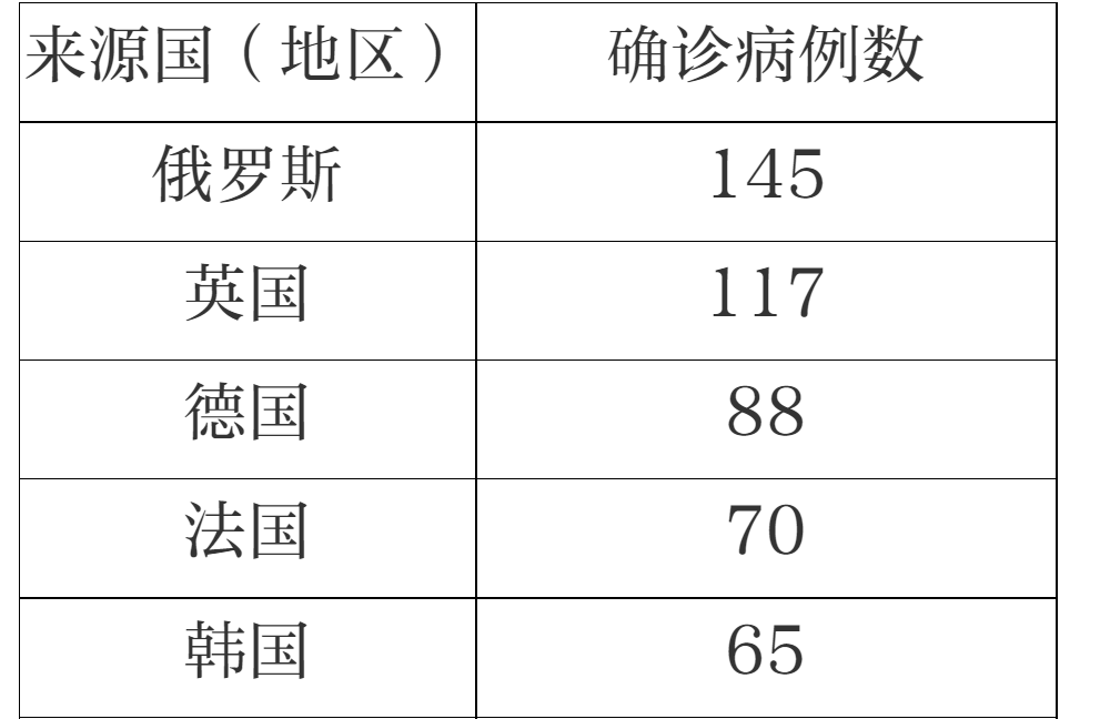 境外輸入確診病例來(lái)源國(guó)(地區(qū))情況