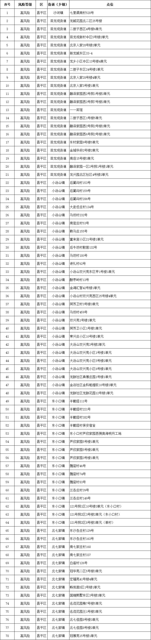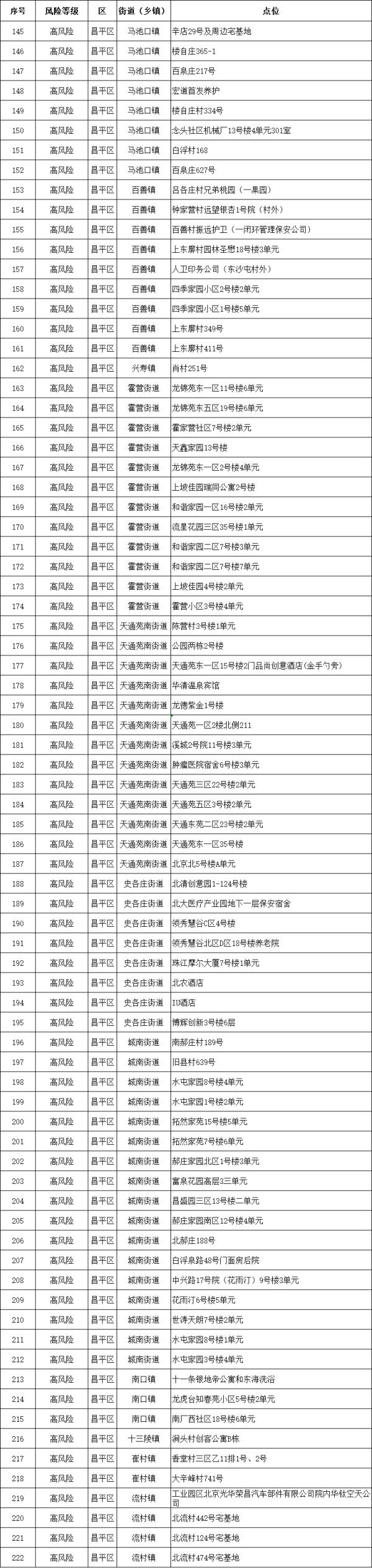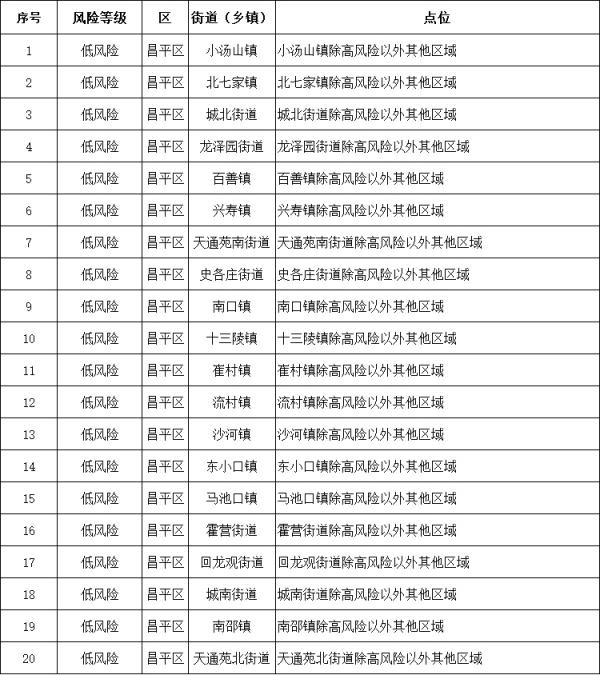 據(jù)北京市昌平區(qū)疾病預(yù)防控制中心通報(bào),截至12月4日24 時(shí),昌平區(qū)共有高風(fēng)險(xiǎn)區(qū)222個(gè),低風(fēng)險(xiǎn)區(qū)20個(gè),詳情如下: