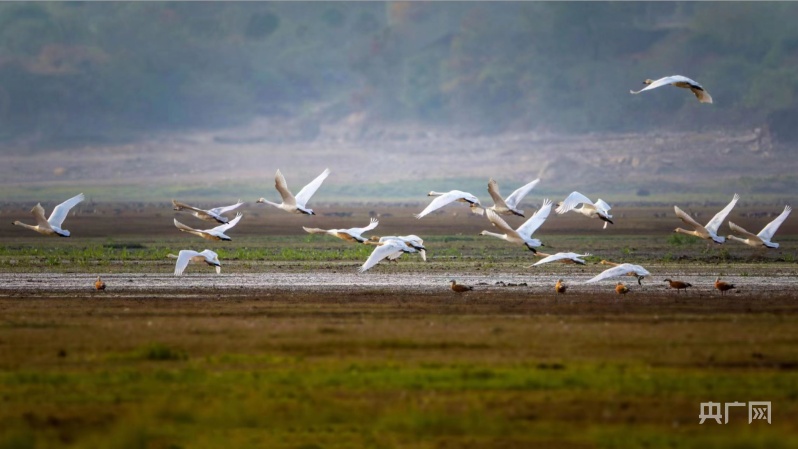 江西都昌:小天鵝翩翩起舞迎新年