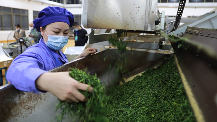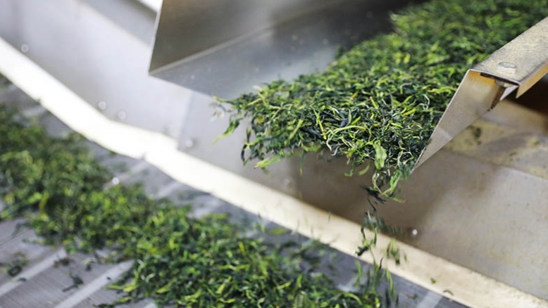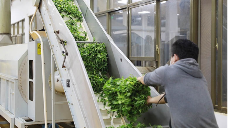 烘干后的茶葉被傳送到下一道工序(央廣網發(fā) 孟凡盛 攝)