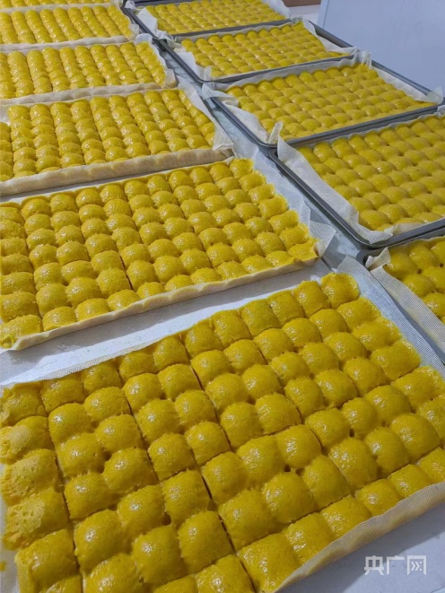 央廣網(wǎng)興安12月29日消息(記者王秋蕾 通訊員譚艷麗)“咱家的大黃米黏豆包,用的都是當(dāng)?shù)貎?yōu)質(zhì)的黃米,純手工制作,傳統(tǒng)口味,不含任何添加劑、色素,吃起來嘎嘎香,喜歡的老鐵們可以放心下單?!敝辈ラg內(nèi),張兆儀一邊用手機(jī)拍攝著工人現(xiàn)場(chǎng)制作粘黏豆包的鏡頭,一邊向直播間的網(wǎng)友們介紹著。