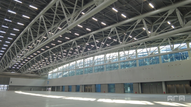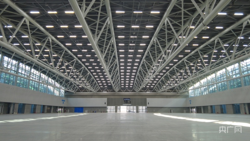 D區(qū)設有東西兩個登錄大廳,面積分別為9600、3000㎡,凈高約3.5米,圖為東登錄大廳(央廣網記者 夏燕 攝)