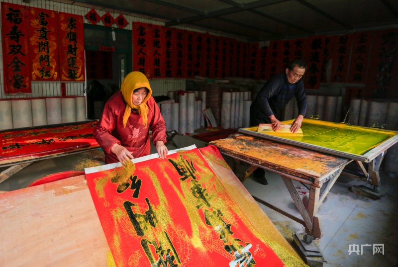村民正在印刷春聯(lián)(央廣網(wǎng)發(fā) 郭連云攝)
