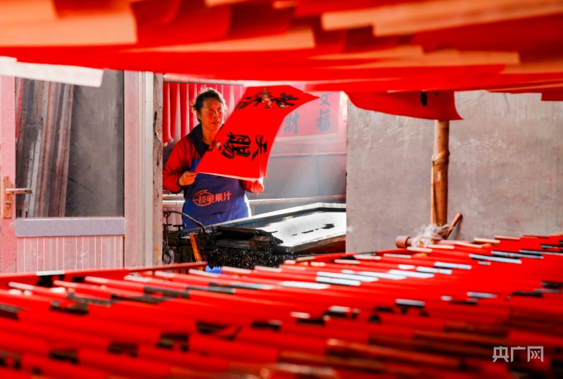 東李家村村民正在晾曬印刷好的春聯(lián)(央廣網(wǎng)發(fā) 郭連云攝)