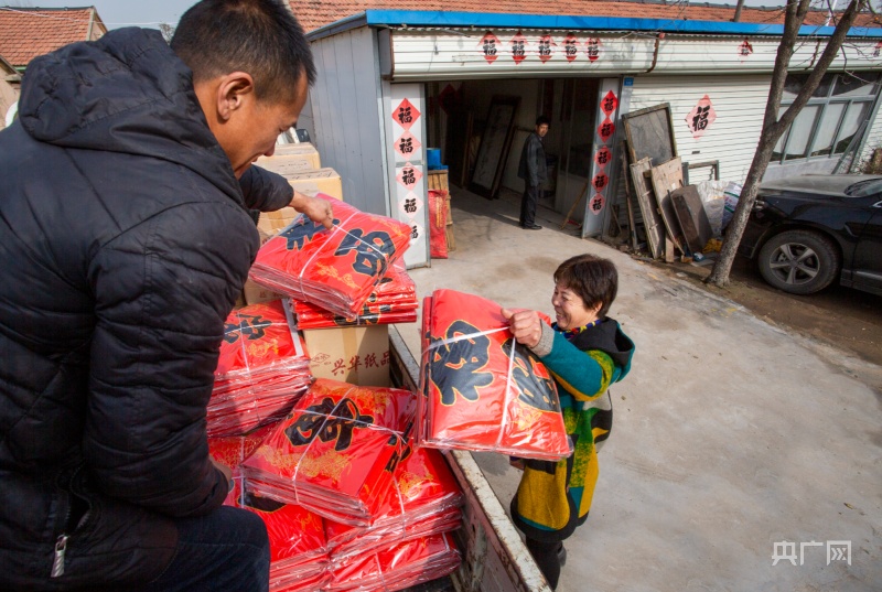 村民將春聯(lián)打包裝車(chē)(央廣網(wǎng)發(fā) 宋世榮攝)