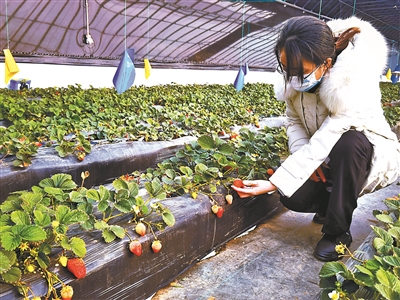 走進(jìn)位于平谷區(qū)峪口鎮(zhèn)南營村的設(shè)施農(nóng)業(yè)智慧云服務(wù)系統(tǒng)產(chǎn)業(yè)化“博士”農(nóng)場,日光溫室里春意濃濃,空氣中清甜的香氣撲鼻而來。三九天的北京,這里一派生機(jī)盎然。一月正是草莓豐收的季節(jié),南營村“博士”農(nóng)場的草莓也迎來了豐收季。與其他地區(qū)的草莓種植不同,依托于中國農(nóng)業(yè)大學(xué)智慧農(nóng)業(yè)研究中心科研團(tuán)隊(duì)建設(shè)的“博士”農(nóng)場,顆顆草莓都被打上了智慧的印記。