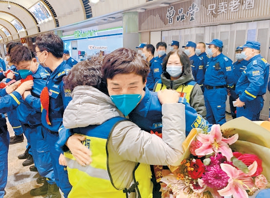 “歡迎大家回到祖國的懷抱,也謝謝你們不遠萬里奔赴土耳其幫助當(dāng)?shù)氐陌傩??!狈可剿{天救援隊隊長陳海軍動情地說,“我們在北京特別擔(dān)心你們的安危,因為有時差,我常常夜里兩三點還在等你們回信息,好在你們都平安回來了?!?/p>