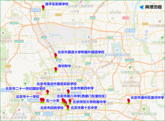 早間,中關(guān)村、廣渠門、什剎海、豐臺西南四環(huán)等學校較為集中的地區(qū)交通壓力突出。清華附中、北京四中、皇城根小學、十一學校、海淀外國語實驗學校、師范大學第二附屬中學海淀學校、第十二中學科豐校區(qū)等校園周邊車流集中,校園門前道路容易出現(xiàn)行駛緩慢的情況。各中學周邊道路車流高峰將出現(xiàn)在7:00至7:30;小學周邊車流高峰普遍出現(xiàn)在7:30至8:00。