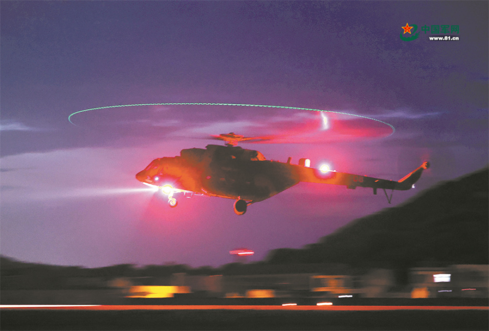 某陸航旅海上實(shí)兵實(shí)彈演練在夜間打響。張歡朋 攝