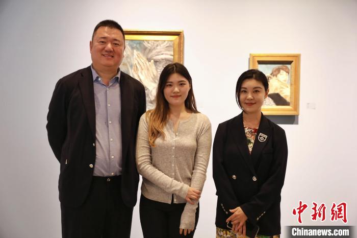 6月底,在北京舉辦個人藝術展的臺灣青年于飛(中)與父母。中新社記者 李雪峰 攝