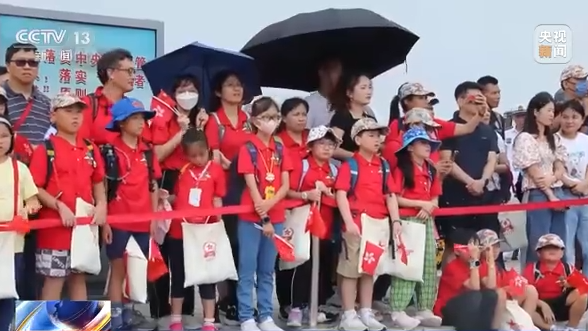 上午10時,在昂船洲軍營,駐香港部隊(duì)三軍儀仗隊(duì)邁著鏗鏘有力的步伐護(hù)旗而出,伴隨著雄壯的《義勇軍進(jìn)行曲》,青少年們與解放軍官兵一起升國旗、唱國歌。在隨后的軍事課目表演中,突降大雨,官兵們頂著暴雨為現(xiàn)場觀眾展示了軍樂隊(duì)列、格斗技術(shù)、刺殺操、獵人戰(zhàn)斗等課目。