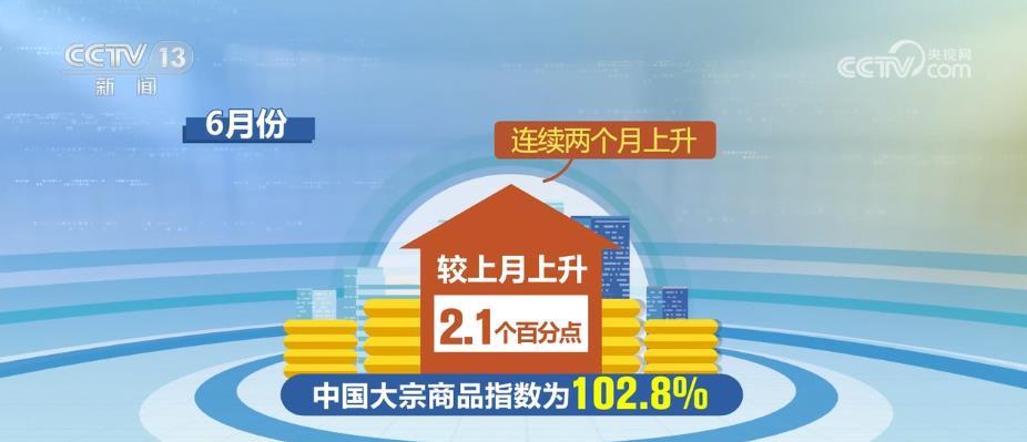 6月份,中國大宗商品指數(shù)為102.8%,較上月上升2.1個百分點,連續(xù)兩個月上升。