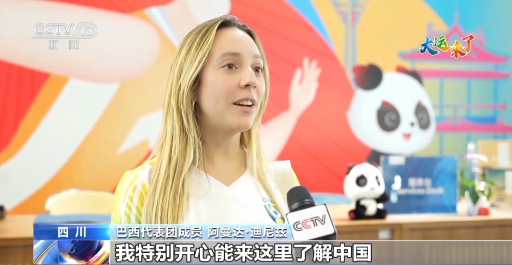 巴西代表團(tuán)成員 阿曼達(dá)·迪尼茲:中國真是個(gè)漂亮的國家,我特別開心能來這里了解中國、感受文化,認(rèn)識大家。這里的食物很美味,城市也很漂亮。成都讓我印象太深刻了。