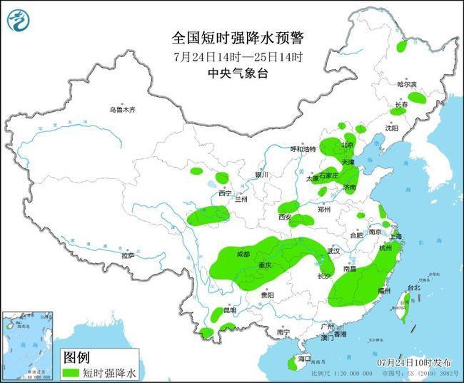 中央氣象臺7月24日10時發(fā)布強對流天氣藍色預警