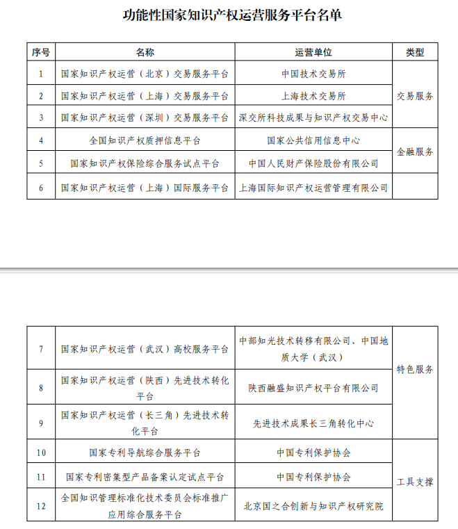 國家知識產(chǎn)權(quán)局認(rèn)定12家功能性國家知識產(chǎn)權(quán)運(yùn)營服務(wù)平臺(tái)