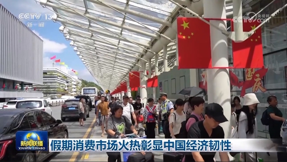 央視網(wǎng)消息(新聞聯(lián)播):中秋國(guó)慶假期,強(qiáng)勁需求和優(yōu)質(zhì)供給雙向發(fā)力,城鄉(xiāng)市場(chǎng)人氣旺盛、活力澎湃,有力釋放多層次多樣化消費(fèi)需求,彰顯出中國(guó)經(jīng)濟(jì)的強(qiáng)大韌性。