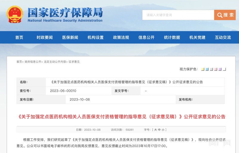 根據(jù)國(guó)家醫(yī)保局發(fā)布的公告,征求意見反饋截止時(shí)間為2023年10月17日17:00。