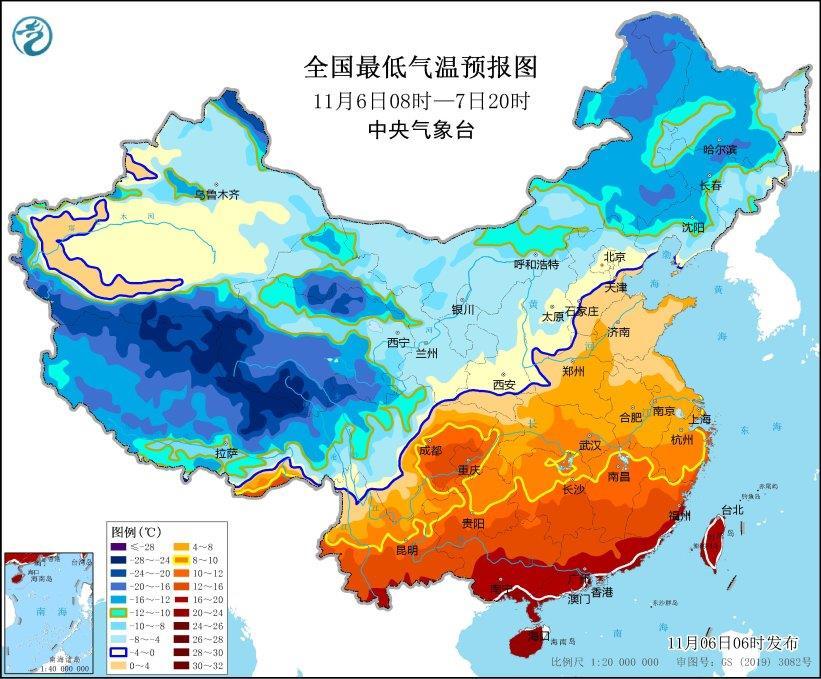寒潮藍(lán)色預(yù)警:受強(qiáng)冷空氣影響,預(yù)計,11月6日08時至11月7日20時,內(nèi)蒙古東部、東北地區(qū)中南部、黃淮東部、江淮東部和南部、江南東部等地大部將先后降溫6~8℃,其中,內(nèi)蒙古東南部、東北地區(qū)中南部等地部分地區(qū)降溫可達(dá)10~14℃。最低氣溫0℃線將位于河北北部、天津北部、山西南部至陜西關(guān)中平原、甘肅東南部一帶,長江中下游以北地區(qū)有4~6級偏北風(fēng),陣風(fēng)7~9級,局地可達(dá)10級;6日至7日夜間,渤海、黃海、東海等海域有7~8級風(fēng),最大陣風(fēng)9~11級。