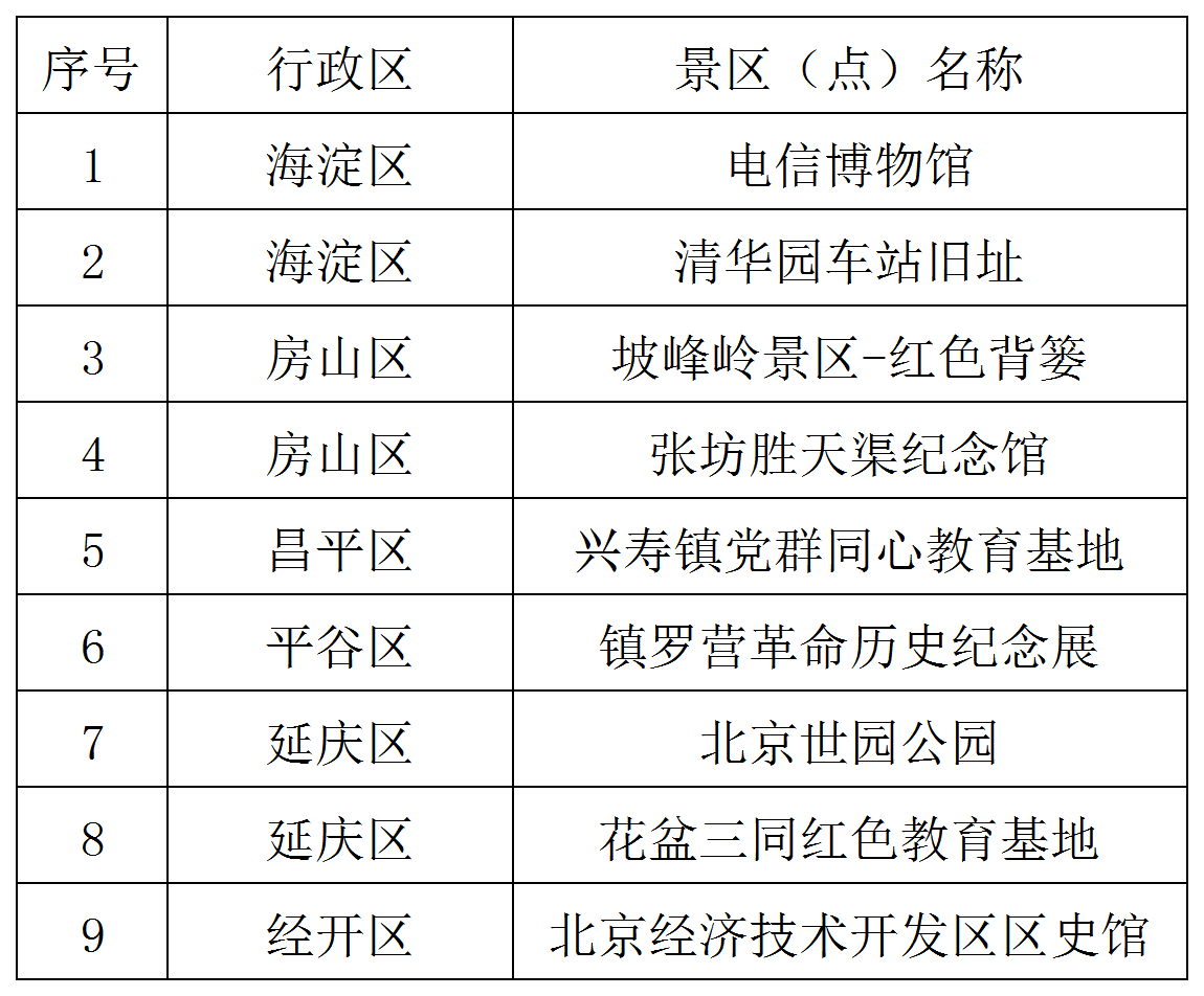 2023年新增北京市紅色旅游景區(qū)(點(diǎn))名單如下: