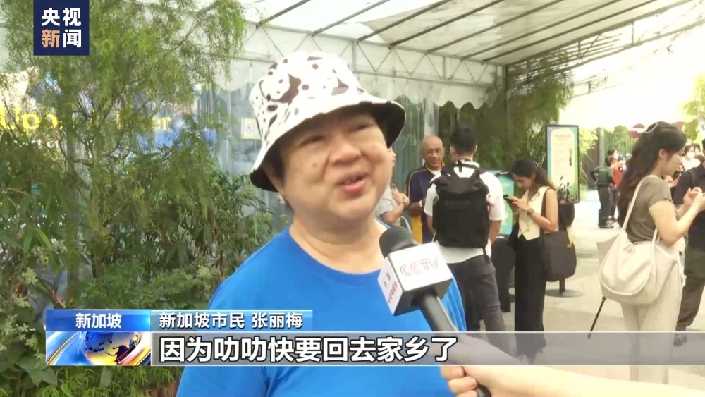 新加坡市民 張麗梅:因?yàn)檫愤房煲厝ゼ亦l(xiāng)了,所以我要過來(lái)跟它打招呼,說拜拜。很傷心,因?yàn)槲液芟M梢粤粼谛录悠?,可是也是高興,因?yàn)樗梢曰厝ゼ亦l(xiāng)幫助研究和保護(hù)大熊貓了。