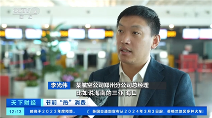 某航空公司鄭州分公司總經(jīng)理 李光偉:目前比較火熱的是春運期間的一些旅游航線,比如海南的三亞、??冢颇系睦ッ?、西雙版納等熱門航線。相較于11月份、12月份,增長了10倍左右,票比較緊張。
