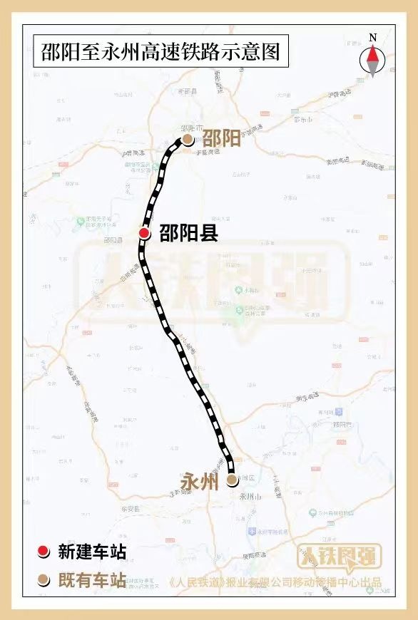 邵永高鐵位于湖南省境內(nèi),全長(zhǎng)約96公里,設(shè)計(jì)時(shí)速350公里,線路自邵陽市邵陽站引出,向南經(jīng)邵陽市大祥區(qū)、邵陽縣,永州市東安縣、冷水灘區(qū),接入永州站,共設(shè)邵陽、邵陽縣、永州3座車站,其中邵陽縣站為新建車站,其他為既有車站,建設(shè)工期4年。