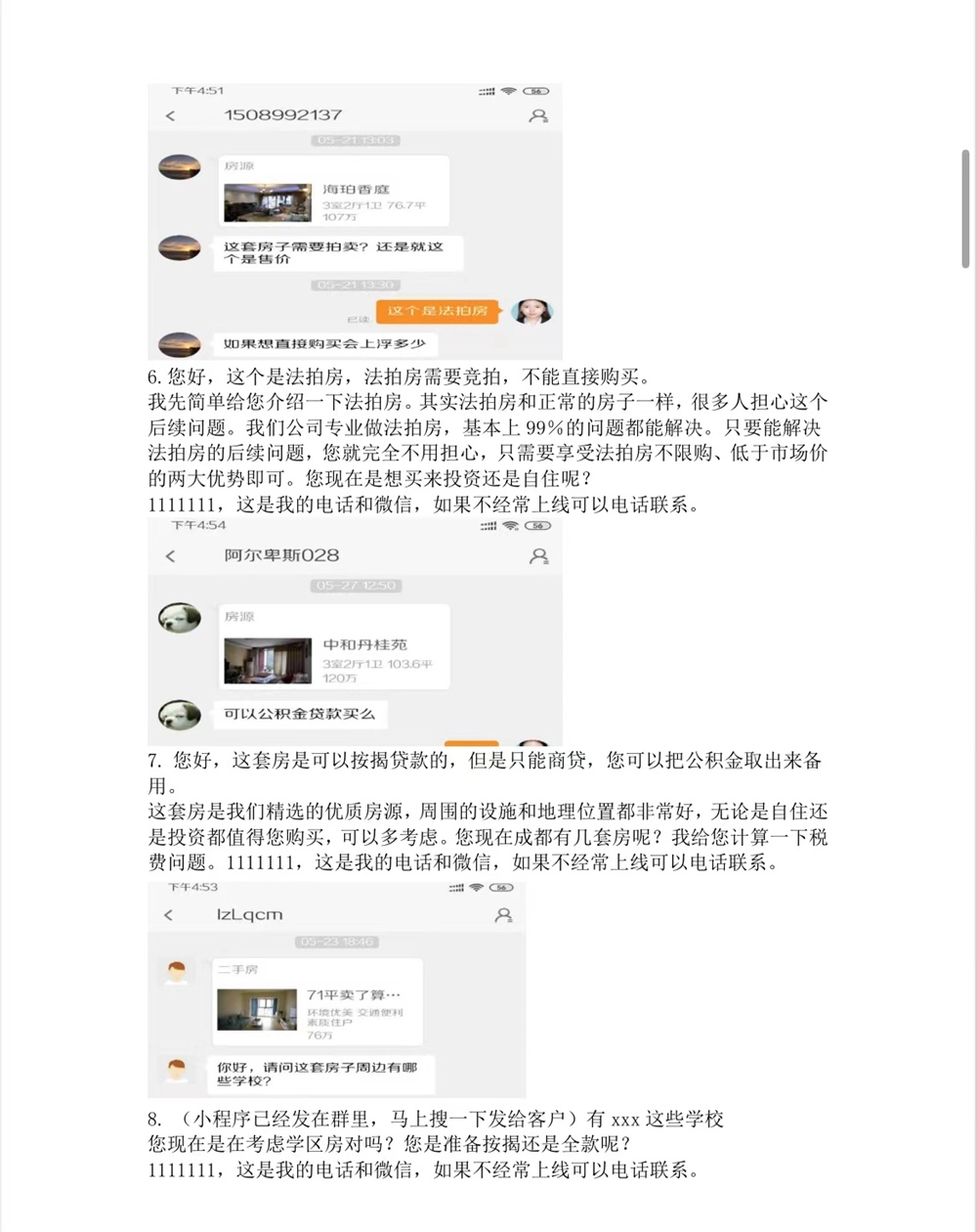 吳先生說,他所在的維權(quán)群里有30多位消費(fèi)者,盡管大家是與不同中介簽訂的合同,但梳理發(fā)現(xiàn),這些“法拍房中介”前期向客戶推銷時有固定的話術(shù)?!暗谝?,就是說現(xiàn)在很多房子在拍賣;依據(jù)我們的經(jīng)驗(yàn),在這一帶,這種類型的房子二十幾萬就能拿下來了;他就告訴你,基本上這個價格不會有什么變化的,你只要跟我們簽約,我們就能幫你服務(wù)、幫你拿到?!?/p>