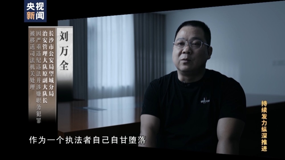長(zhǎng)沙市公安局望城分局治安管理大隊(duì)原副大隊(duì)長(zhǎng) 劉萬(wàn)全:總共送了兩萬(wàn)三還是兩萬(wàn)五千塊錢。作為一個(gè)執(zhí)法者,自己自甘墮落,為了這些蠅頭小利,貪小利貪小便宜,沒有守住紀(jì)律的、法律的底線。
