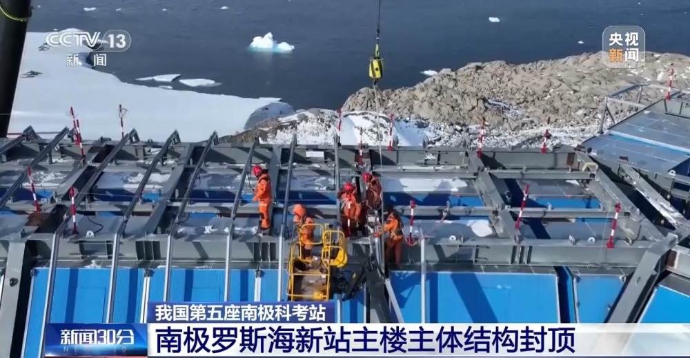 總臺(tái)央視記者 李寧:從去年的12月7日,中國(guó)第四十次南極考察隊(duì)新站隊(duì)抵達(dá)這個(gè)地方開(kāi)始,就馬不停蹄地投入到了新站的建設(shè)工作中。經(jīng)過(guò)一個(gè)多月的奮戰(zhàn),目前工程進(jìn)展順利,除了今天主樓結(jié)構(gòu)完成封頂之外,84個(gè)功能模塊已經(jīng)全部安裝到位。目前正在進(jìn)行的就是幕墻板的安裝。