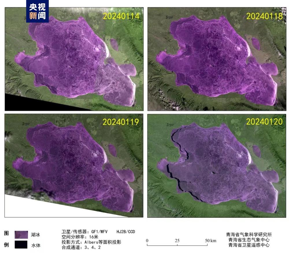 記者從青海省氣象局獲悉,衛(wèi)星遙感監(jiān)測顯示,1月14日起青海湖表面完全凍結,依據《高原湖泊湖冰物候遙感監(jiān)測技術標準》(DB63/T1929-2021),湖泊表面連續(xù)5日完全被冰覆蓋的首日為完全凍結日,因此判定1月14日為青海湖完全凍結日。