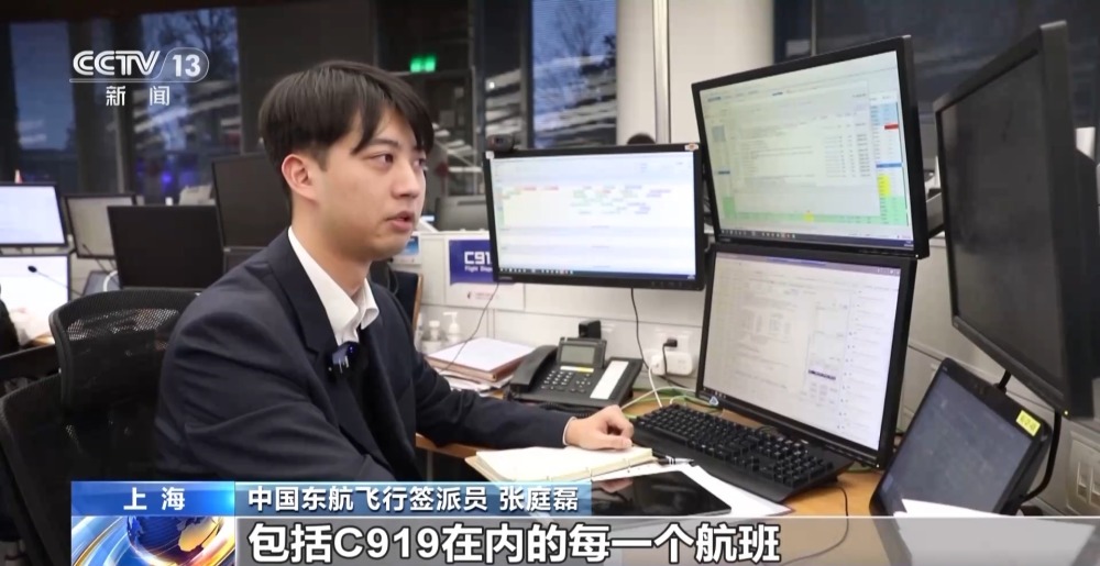 晚上10點,C919國產(chǎn)大飛機值班簽派員張庭磊的工作臺上,多個顯示屏不斷更新信息,首次參與春運,和機組安全飛行息息相關的氣象、燃油、線路等核心數(shù)據(jù),正在加速度“跑起來”。