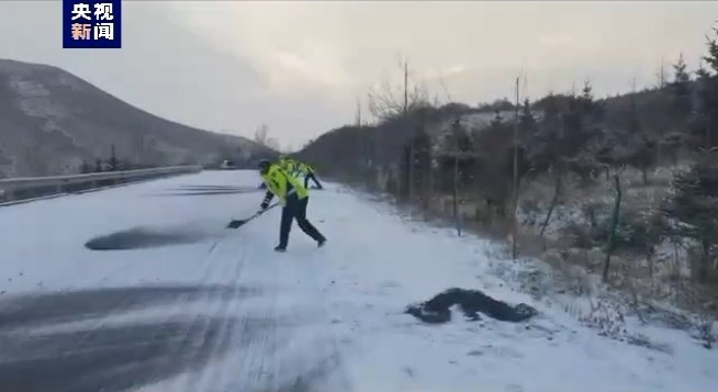 甘肅甘南藏族自治州多地國省道出現(xiàn)道路結(jié)冰,特別是背陰山路、橋梁、彎道路段積雪較厚,過往車輛通行不便。轄區(qū)交警啟動惡劣天氣應(yīng)急預(yù)案,加強(qiáng)道路巡邏頻次、撒防滑沙、安全提示、服務(wù)群眾、簡短放行車輛等措施,全力保障冰雪天氣下轄區(qū)道路的平安和群眾的安全出行。