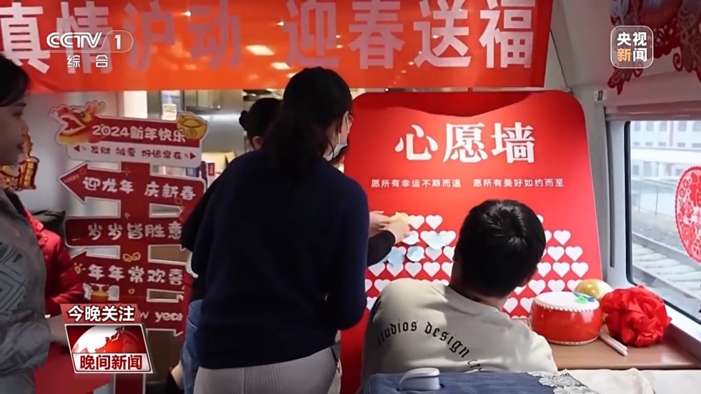 同樣,在青島開往上海虹橋的G232次列車上,列車工作人員寫福字寫春聯(lián),提前為旅客送上新春祝福。工作人員還為每一名參加活動(dòng)的旅客,準(zhǔn)備了愛心形狀的便利貼,寫下新年心愿。