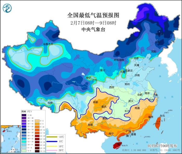 中央氣象臺2月7日06時(shí)繼續(xù)發(fā)布低溫藍(lán)色預(yù)警