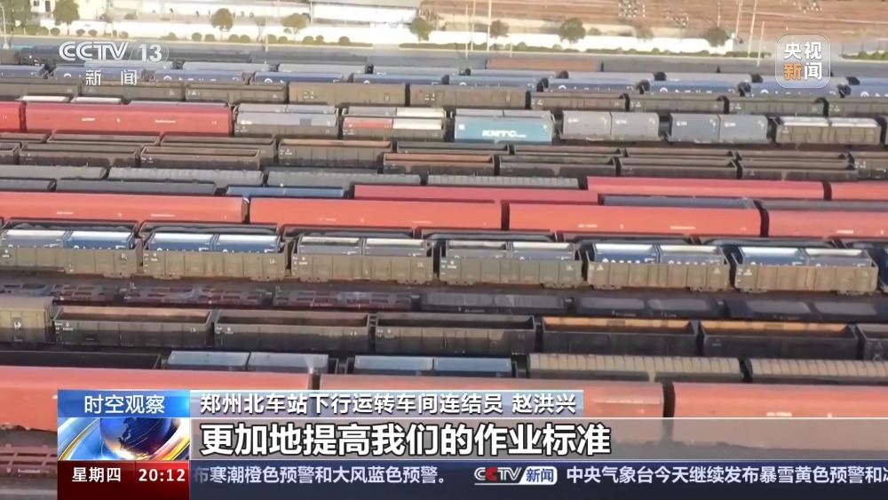 總臺(tái)央視記者 蔣樹林:這里是鄭州北車站,也是全國作業(yè)量最大的編組站,大家看我眼前這個(gè)車?yán)锩嫜b的就是當(dāng)下春耕所急需用的化肥原料,作業(yè)還在加班加點(diǎn)地往前推進(jìn)。