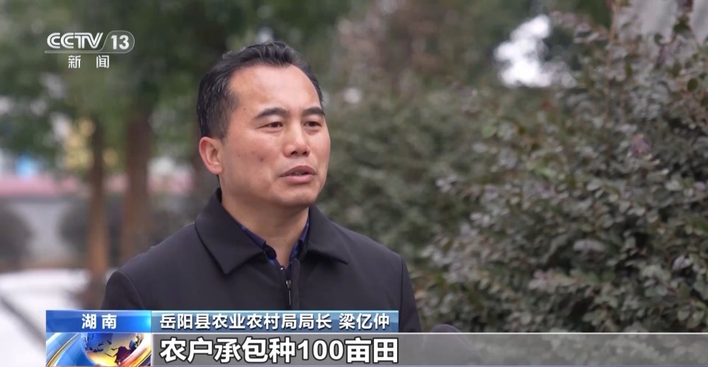 岳陽縣農(nóng)業(yè)農(nóng)村局局長 梁億仲:通過去年我們試點的情況,農(nóng)戶承包種100畝,是我們當?shù)胤N田效益最高的模式。為什么呢?因為我們大多是丘陵山地,不適合大面積連片種植。這種種糧方式,是我們因地制宜,通過實踐得出的。