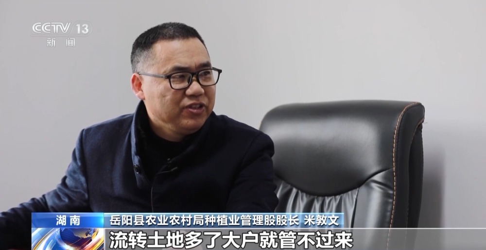 岳陽縣農(nóng)業(yè)農(nóng)村局種植業(yè)管理股股長 米敦文:流轉(zhuǎn)土地多了,大戶就管不過來,請人又保證不了畝產(chǎn),還要增加開支,大戶的心氣也跟著往下掉。所以還是不能搞貪大求多那個老一套,還是要鼓勵大戶在耕種上精耕細作,提高產(chǎn)量,增加效益。