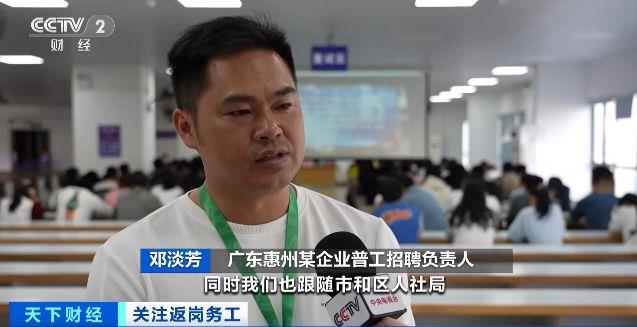廣東惠州某企業(yè)普工招聘負責人 鄧淡芳:我們企業(yè)在初四就已經開始正常招聘了,同時我們也跟隨市和區(qū)人社局,在初七的時候就開始走出去了,去了云南、湖南。