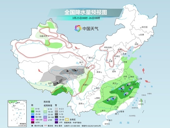 今天(3月25日),中東部降水范圍向南收縮,強(qiáng)度也將有所減弱,不過安徽、江西、浙江、福建、湖南、廣西等地局地仍有大雨。氣溫方面,今明天降溫重心將轉(zhuǎn)移至江南、華南等地,北方則快速進(jìn)入升溫通道,本周將再度掀起一波創(chuàng)新高浪潮,最高氣溫25℃線或?qū)⒈碧е廖鞅钡貐^(qū)一帶。