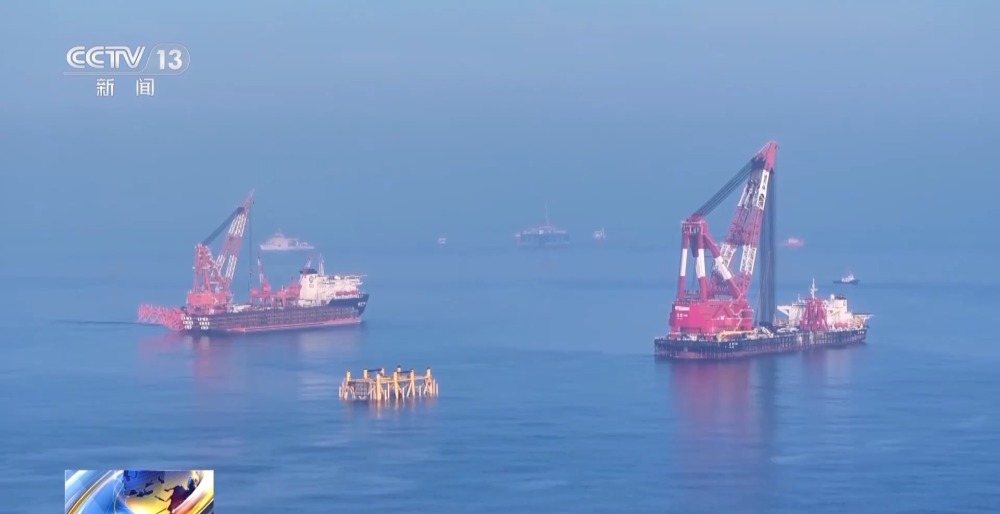 總臺央視記者 古峻嶺:在“?;枴焙I习惭b作業(yè)現(xiàn)場,經(jīng)過16個小時的連續(xù)施工作業(yè),“?;枴币呀?jīng)由昨天滑移下水時的橫向漂浮狀態(tài),變?yōu)橹绷顟B(tài),它高達338米的龐大身軀,已經(jīng)穩(wěn)穩(wěn)站立在了324米深的海床之上,僅有10余米的部分露出水面,接下來工作人員將以它為基礎(chǔ),建設(shè)安裝一座萬噸級海上鉆井平臺。未來它將在臺風(fēng)和惡劣海況的輪番考驗下,在這里穩(wěn)穩(wěn)矗立30年,源源不斷地將深海油氣輸送到千家萬戶,為保障國家能源安全提供堅強支撐。