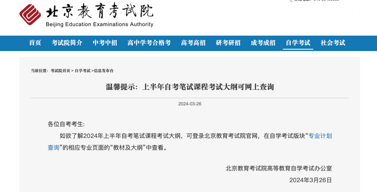 上半年自考筆試課程考試大綱可網(wǎng)上查詢(xún)