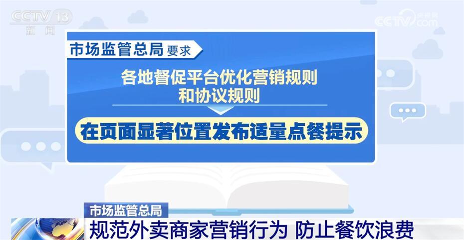 市場(chǎng)監(jiān)管總局要求各地督促平臺(tái)優(yōu)化營(yíng)銷規(guī)則和協(xié)議規(guī)則,在頁(yè)面顯著位置發(fā)布適量點(diǎn)餐提示;鼓勵(lì)平臺(tái)健全激勵(lì)機(jī)制,推動(dòng)商家開(kāi)發(fā)、提供、推廣小份餐品,合理設(shè)置餐品起送價(jià)格,優(yōu)化滿減湊單機(jī)制,不將主食納入滿減優(yōu)惠展示范圍,鼓勵(lì)使用食安封簽。線上線下、同頻同步開(kāi)展防止餐飲浪費(fèi)與食品安全監(jiān)督檢查,持續(xù)開(kāi)展“隨機(jī)查餐廳”行動(dòng)。對(duì)造成明顯浪費(fèi)、嚴(yán)重浪費(fèi)且拒不改正的,依法嚴(yán)厲處罰并公開(kāi)曝光。